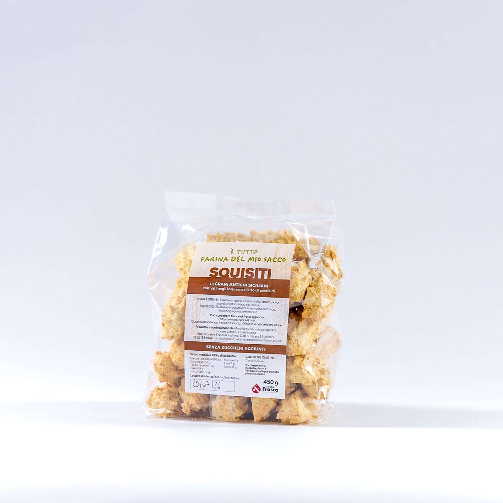 Biscotti artigianali preparati con grani antichi di Sicilia, dal profumo autentico e dal gusto genuino. Una ricetta tradizionale che racchiude tutta la bontà della pasticceria siciliana, perfetti per ogni momento della giornata. Fatto con grani coltivati negli iblei senza uso di pesticidi.